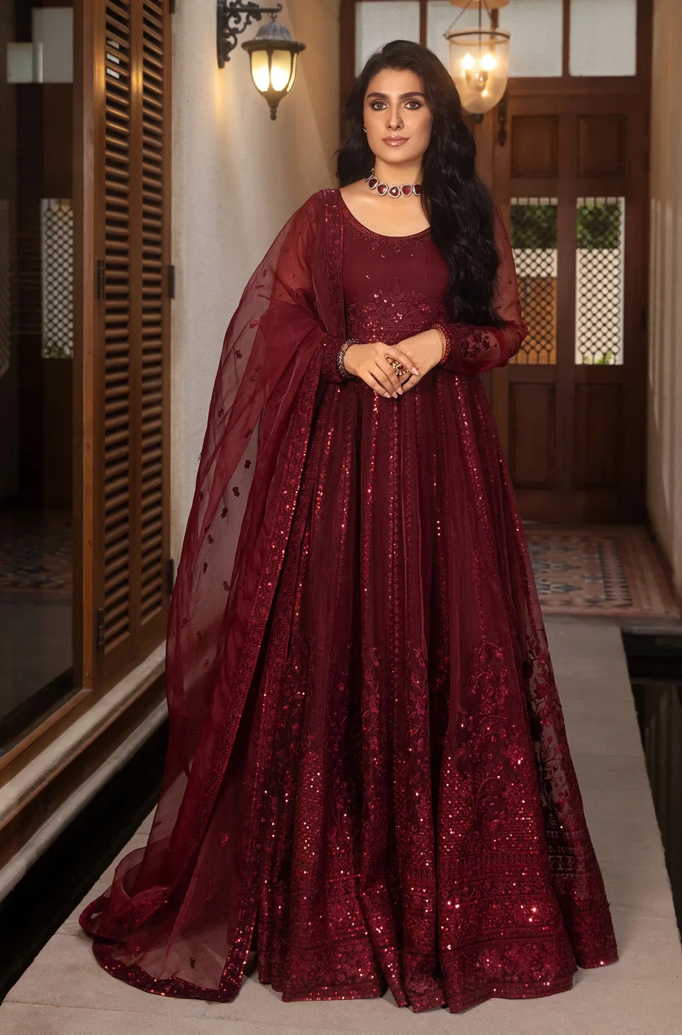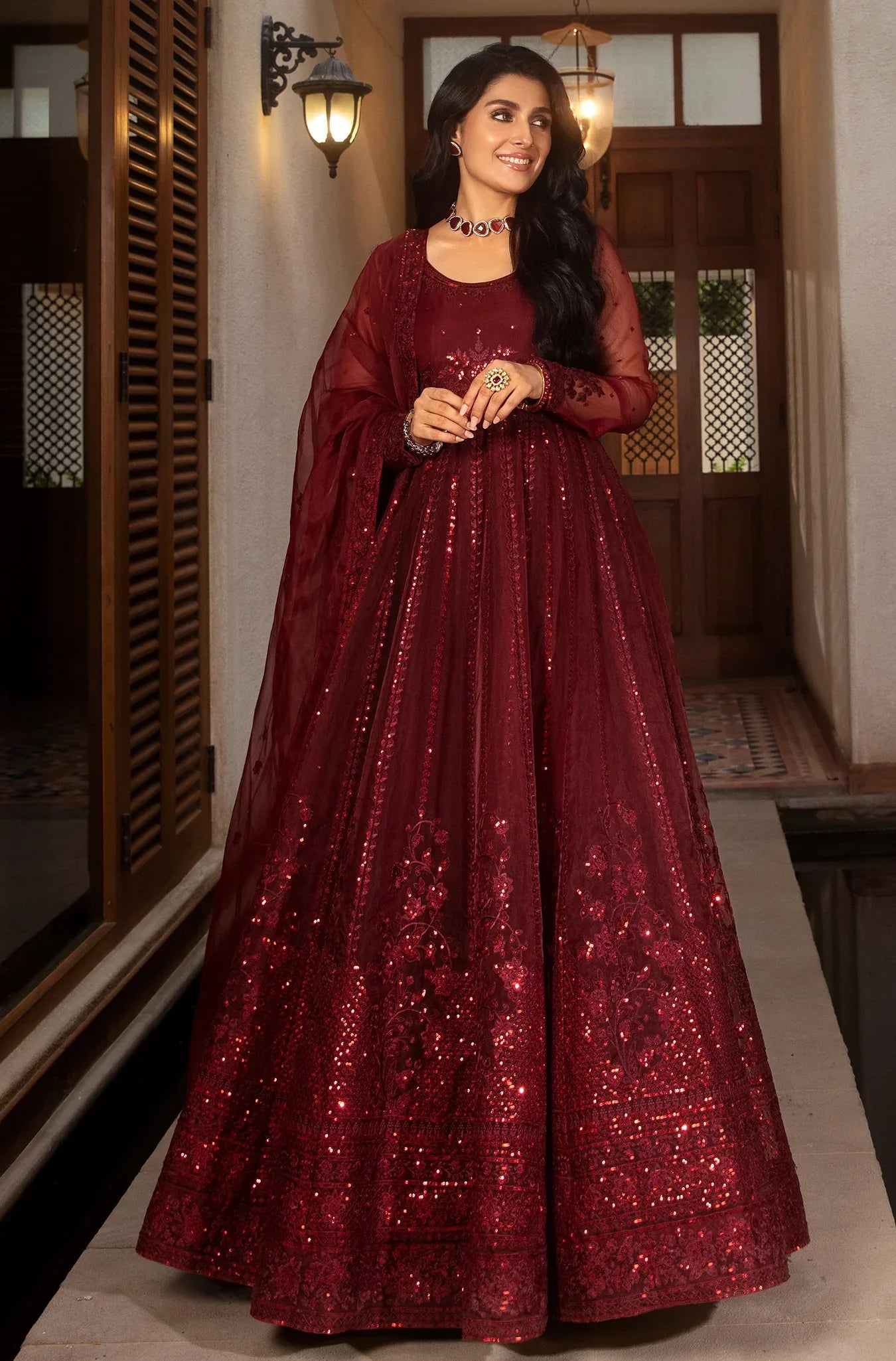 The classic, the modern, the glamorous or the unconventional. Delicately Crafted Deep Maroon Organza Pishwas engraved with intricate details and delicate embroidery work on every panel with an organza dupatta that has exquisite embroidery borders makes it a statement attire for the next festive season.