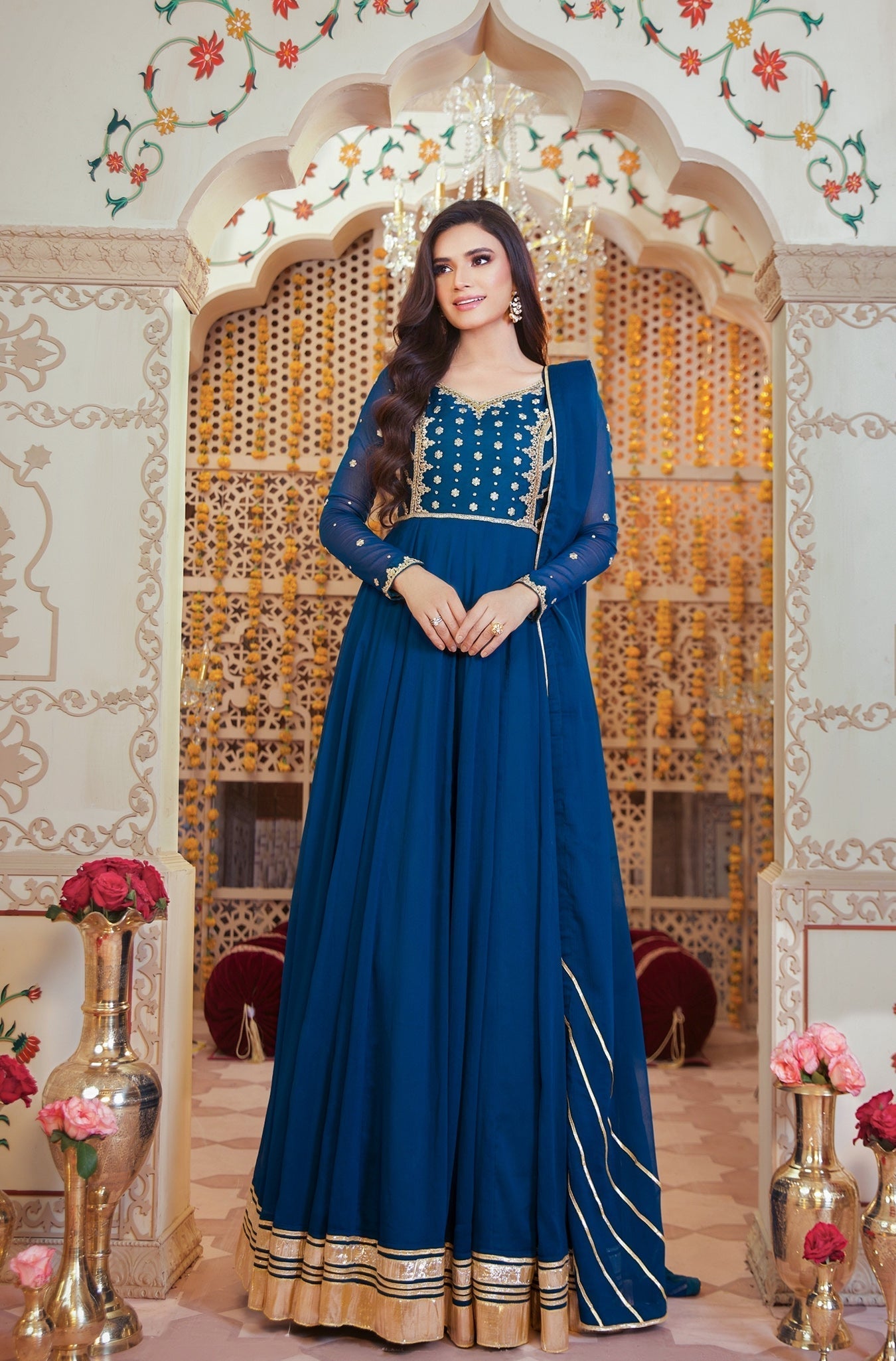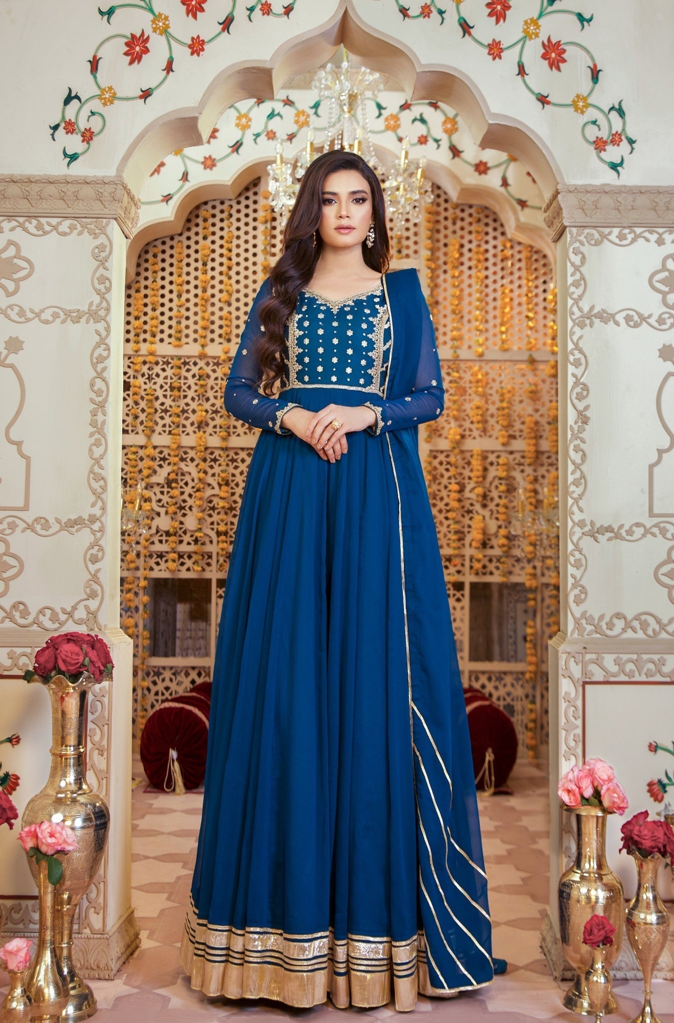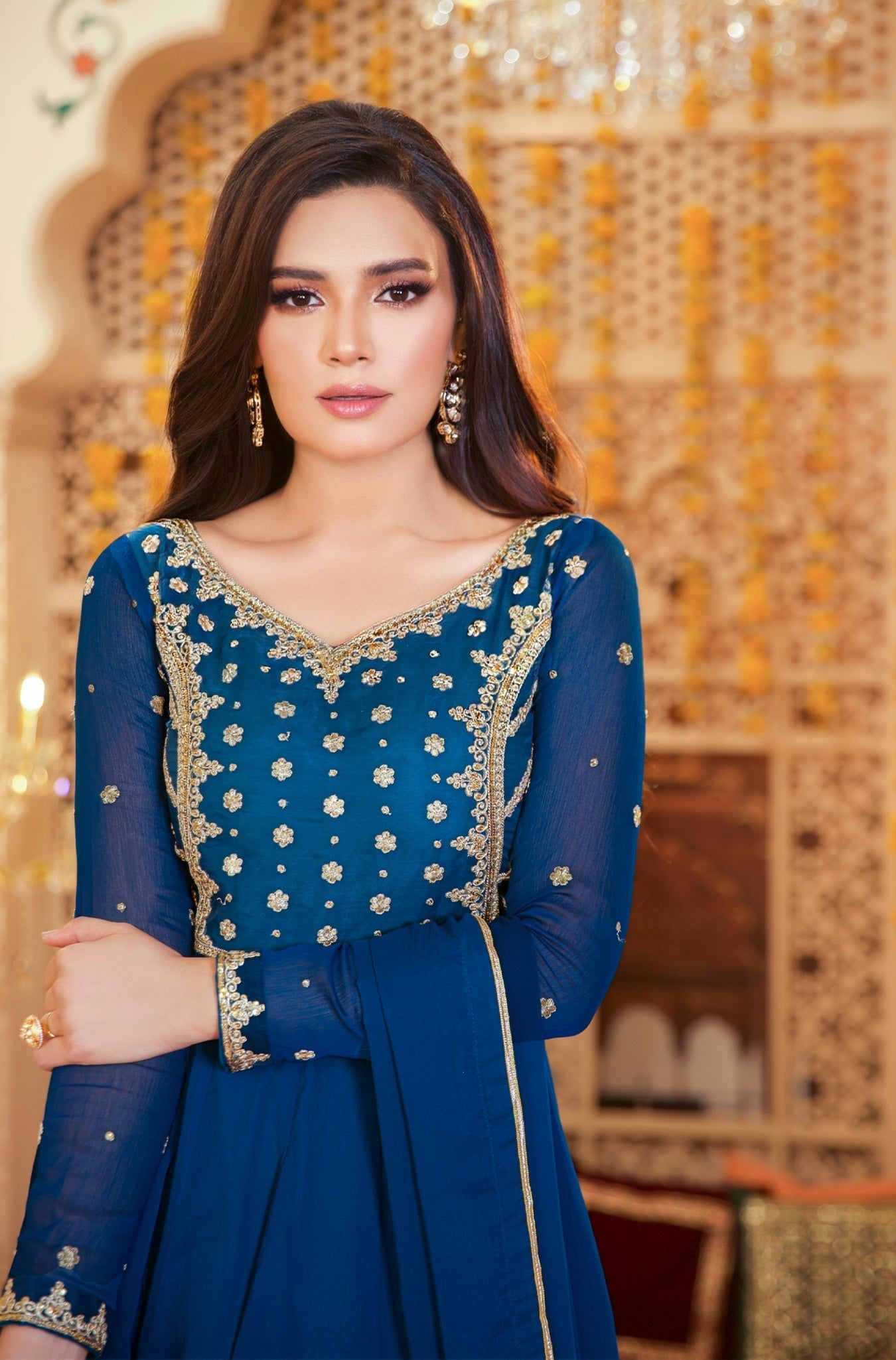 Timeless Elegance: The royal blue color is both bold and versatile, allowing you to style it with a range of accessories. This blue long frock can be worn for multiple events, making it a valuable addition to your collection.