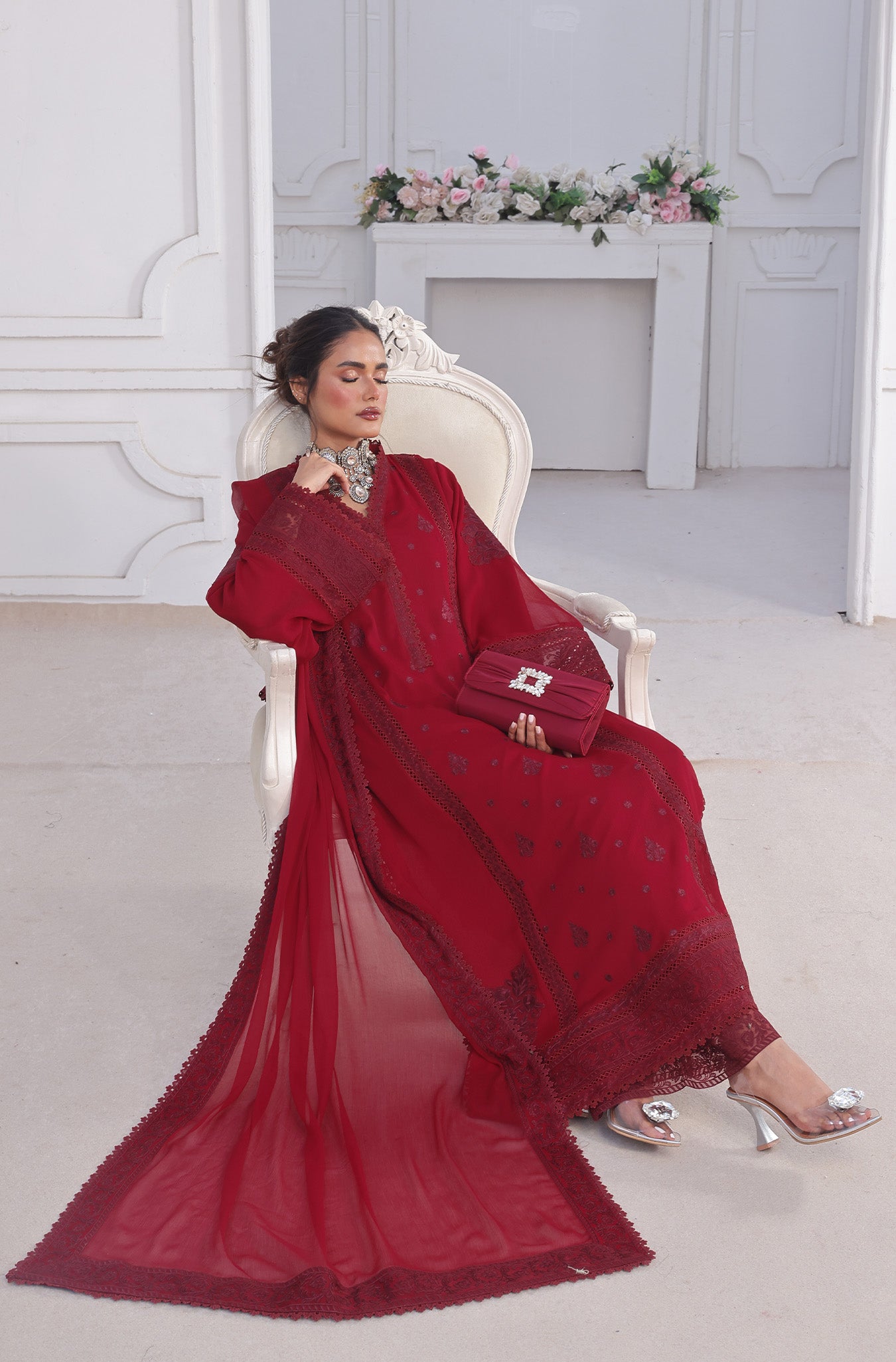 Designed for the woman who carries grace effortlessly and loves the art of fine details, Ruby is more than an outfit—it’s poetry woven in fabric.